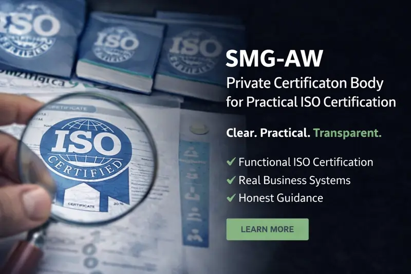 SMG-AW is a private Certification Body (CB) providing ISO management system certifications for organizations that need functional, business-oriented certification rather than bureaucratic paperwork.